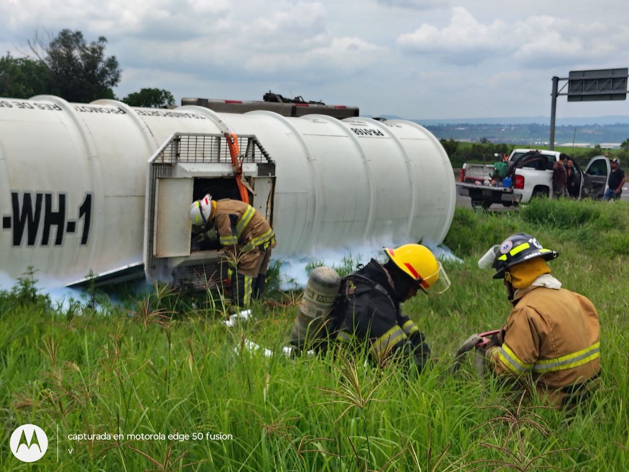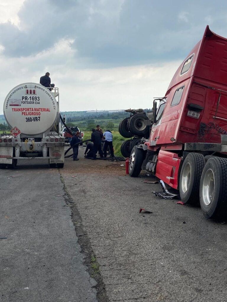 Una pipa de combustible se volcó al impactarse con un vehículo pesado, sobre la autopista a Los Altos kilómetro 39 en Tepatitlán.