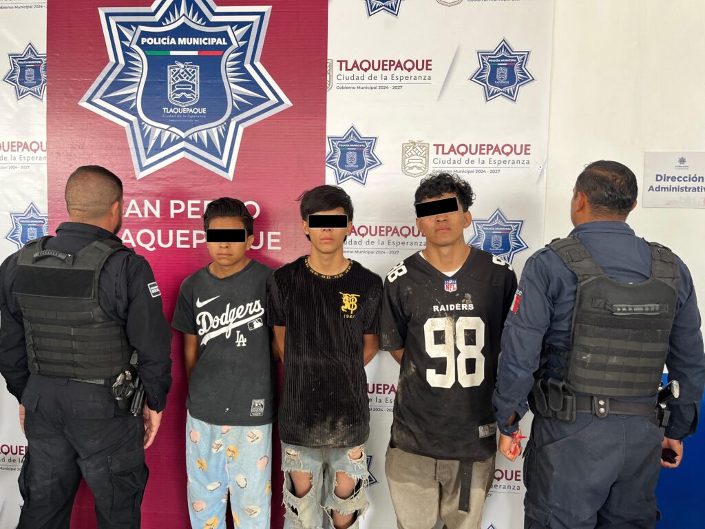 Oficiales de la Secretaría de Seguridad y Protección Ciudadana de San Pedro Tlaquepaque lograron la detención de tres hombres, dos mayores de edad y un menor, señalados por el hurto.