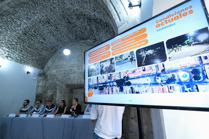 Entre las acciones contempladas se encuentran la construcción de un andador peatonal perimetral, la rehabilitación de banquetas y pasos seguros, la reposición de señalética horizontal y vertical y la mejora del flujo vehicular mediante la sincronización adecuada de los semáforos.