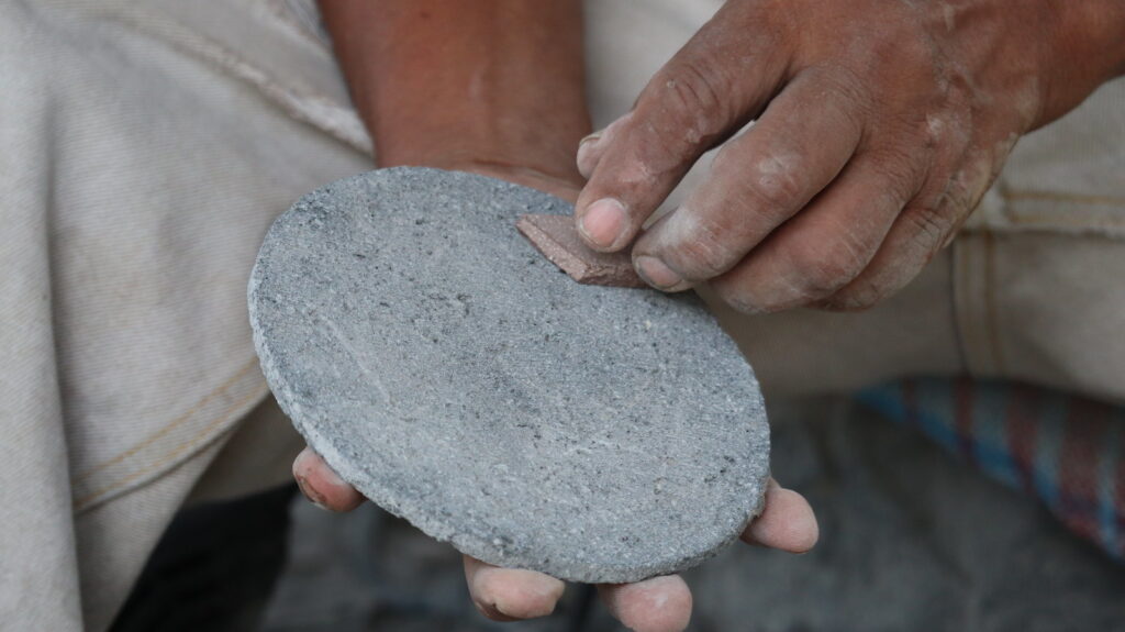 Ante esta situación decidió formar a jóvenes, entre ellos sus sobrinos, para que el arte del basalto no se apague.