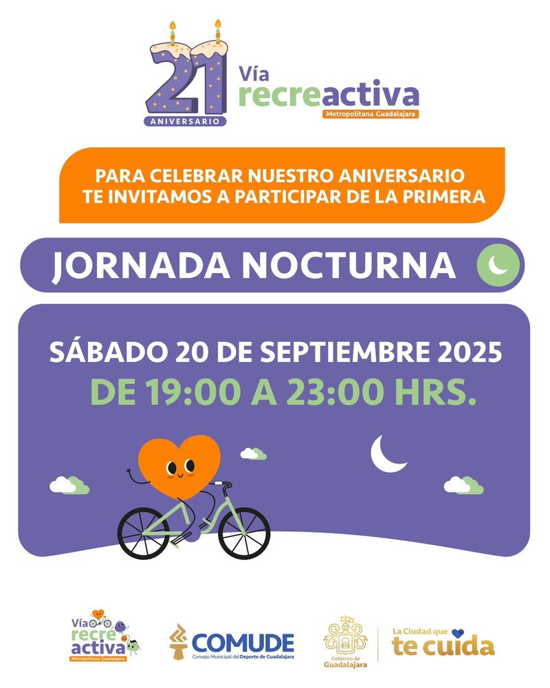 Por el 21 aniversario de la Vía RecreActiva en Guadalajara harán un festejo nocturno con la habilitación de tres kilómetros para un paseo ciclista este sábado.