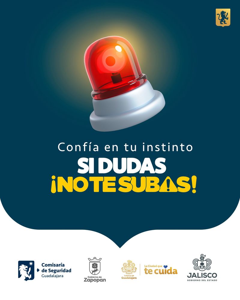 Si dudas o no te sientes seguro es mejor que ¡no te subas!, y reportes cualquier cosa extraña al 089 o al teléfono de la Comisaría de Guadalajara 331-201-6070.