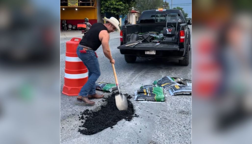 Este es el caso de Manuel Cantú «El Potro», quien desde hace unos años sube videos tapando baches en la ciudad de Monterrey.