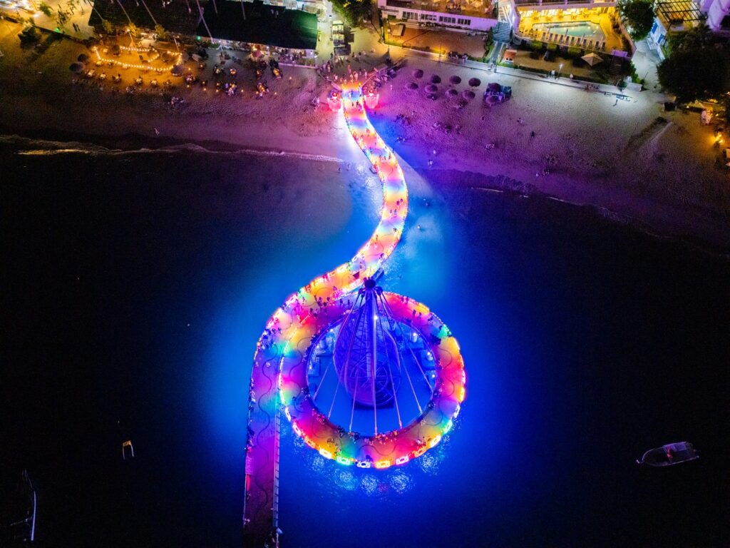 En Puerto Vallarta, el Malecón y el muelle de Playa de los Muertos se transformaron en un paseo temático donde catrinas y calaveras convivieron con la Catrina monumental reconocida por el Récord Guinness, acompañadas de música y flores.