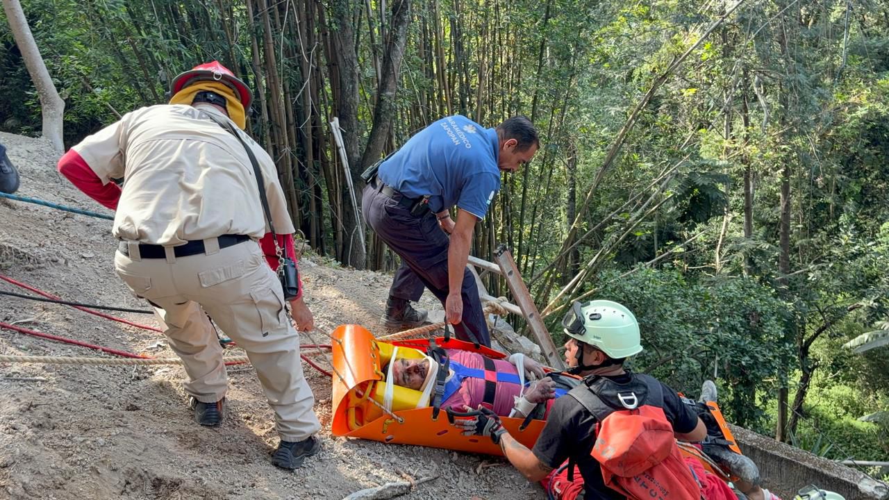 Rescatan a desbarrancado con lesiones graves