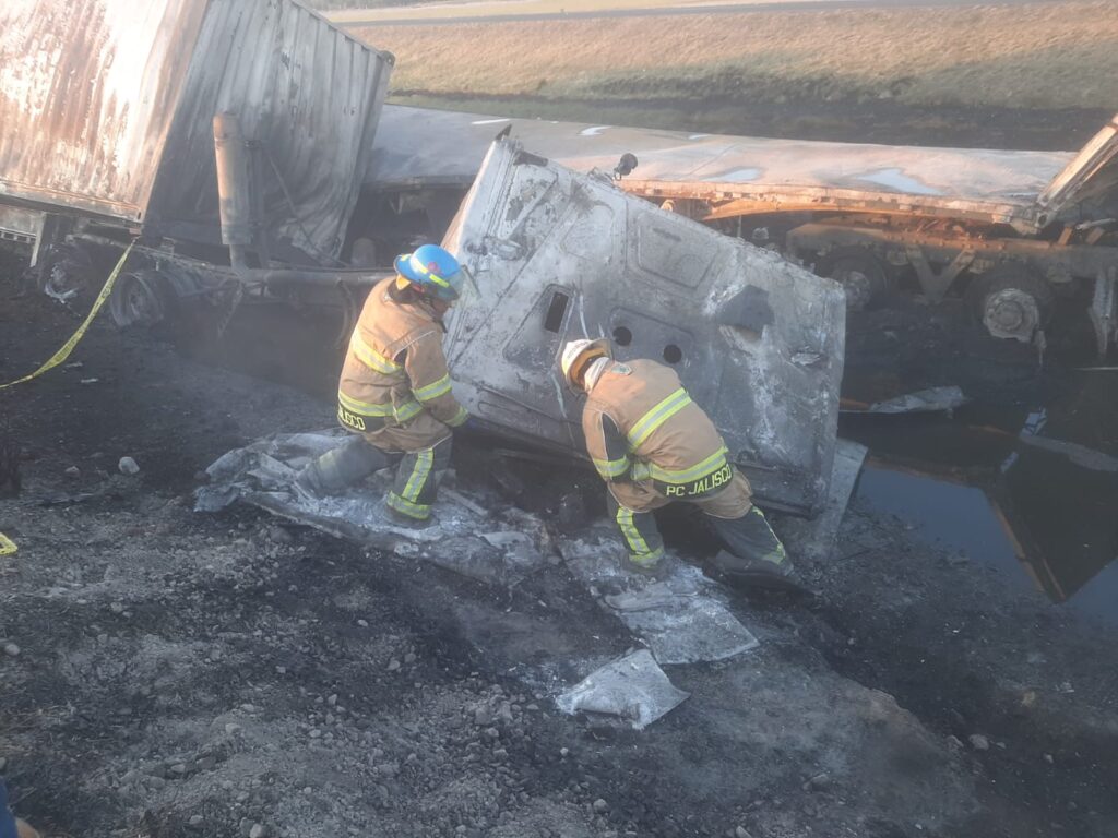 En la madrugada, en el kilómetro 22 de la Autopista Guadalajara -Cima, dos tractocamiones tuvieron un alcance y uno de los choferes murió calcinado.