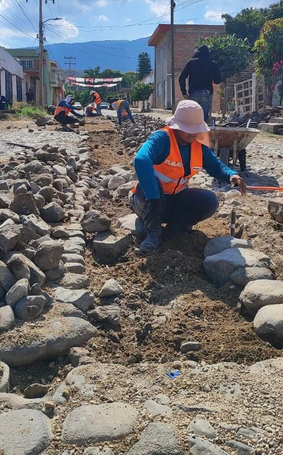 El director de Servicios Públicos Municipales, Juan Carlos Bustamante, informó que durante los últimos tres meses se han rehabilitado más de seis mil 200 metros cuadrados de empedrados, principalmente en pueblos originarios y colonias que presentaban mayor deterioro.