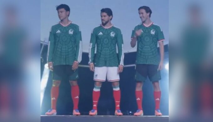 Con la figura del Calendario Azteca, el Tri presentó su nueva indumentaria para la Copa del Mundo