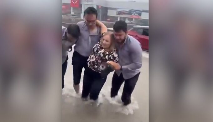 PorArcelia Cruz29/11/2025Una mujer quedó atrapada en las fuertes lluvias de Monterrey y fue salvado por un grupo de trabajadores de una agencia de autos