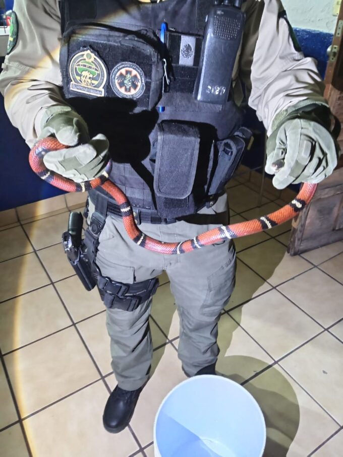 Una serpiente falso coralillo que estaba al interior de un domicilio, en la colonia Progreso en Guadalajara, fue asegurada por los guardabosques. El...
